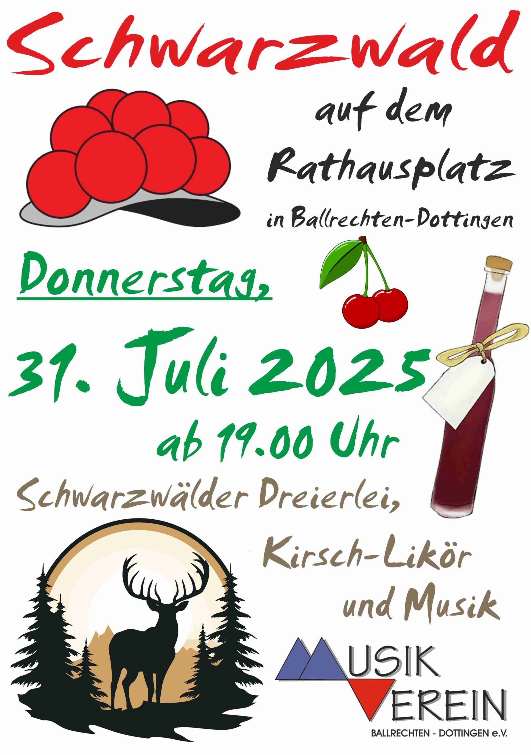 Mit einem Themenhock auf dem Rathausplatz startet der Musikverein Ballrechten-Dottingen auch in diesem Jahr in die Sommerferien. Das Motto für den diesjährigen musikalischen Ferienauftakt ist „Schwarzwald“.